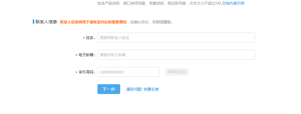若 app 已上线,则可直接填写应用下载地址、联系人信息后提交等待审核。